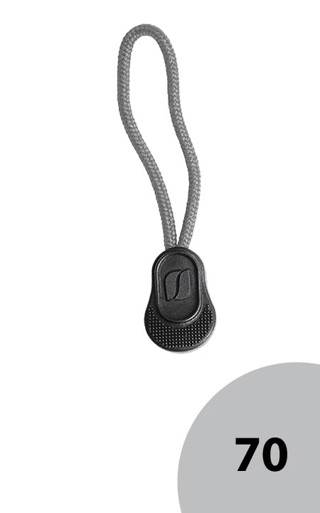 (English) Promo Puller: set of one-colour strings with plastic ending; 5 pieces, possible to install to products marked with icon 00100 promo puller. Promostars logotype pressed on slider of the zipper may be installed as you wish.
